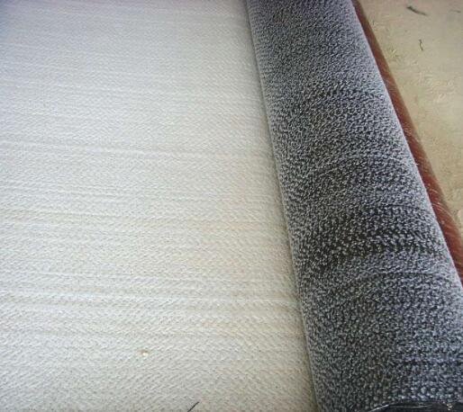 膨潤土防水毯,是由高膨脹性的膨潤土和無紡布之間,用針刺法制成的膨潤土防滲毯,膨潤土遇水時在墊內形成均勻高密度的膠狀防水層,遇水吸附自身重量五倍的水,體積膨脹到原來的15-17倍以上有效的防止水的滲漏。