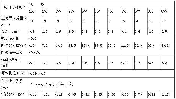 長絲土工布技術指標